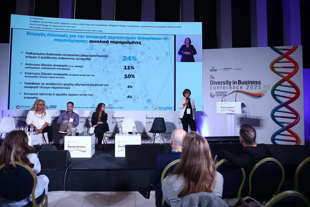 Με κεντρικό μήνυμα «Inclusion is in our DNA», το 7ο Diversity in Business Conference που πραγματοποιήθηκε στο Ζάππειο Μέγαρο, αποτέλεσε φέτος σημείο αναφοράς για τη συζήτηση γύρω από τη διαφορετικότητα, τη συμπερίληψη και τις ίσες ευκαιρίες στον χώρο εργασίας. Ιδιαίτερη προσοχή συγκέντρωσε η παρουσίαση της έρευνας «Be Inclusive Survey», η οποία διεξήχθη από τη Focus Bari για λογαριασμό του ΚΕΑΝ (Κύτταρο Εναλλακτικών Αναζητήσεων Νέων) και παρουσιάστηκε από τη Vice President της Focus Bari, Βαλέρια Τσάμη.