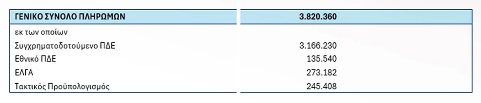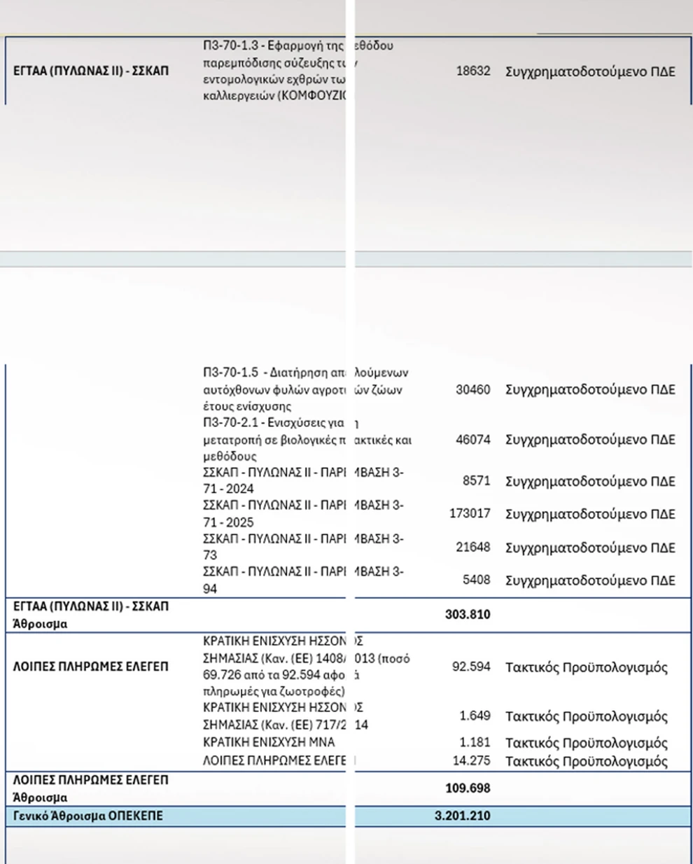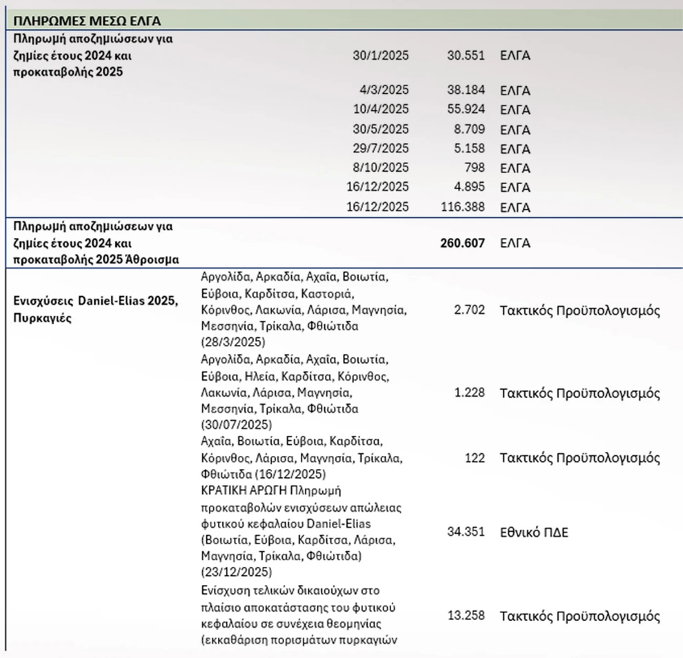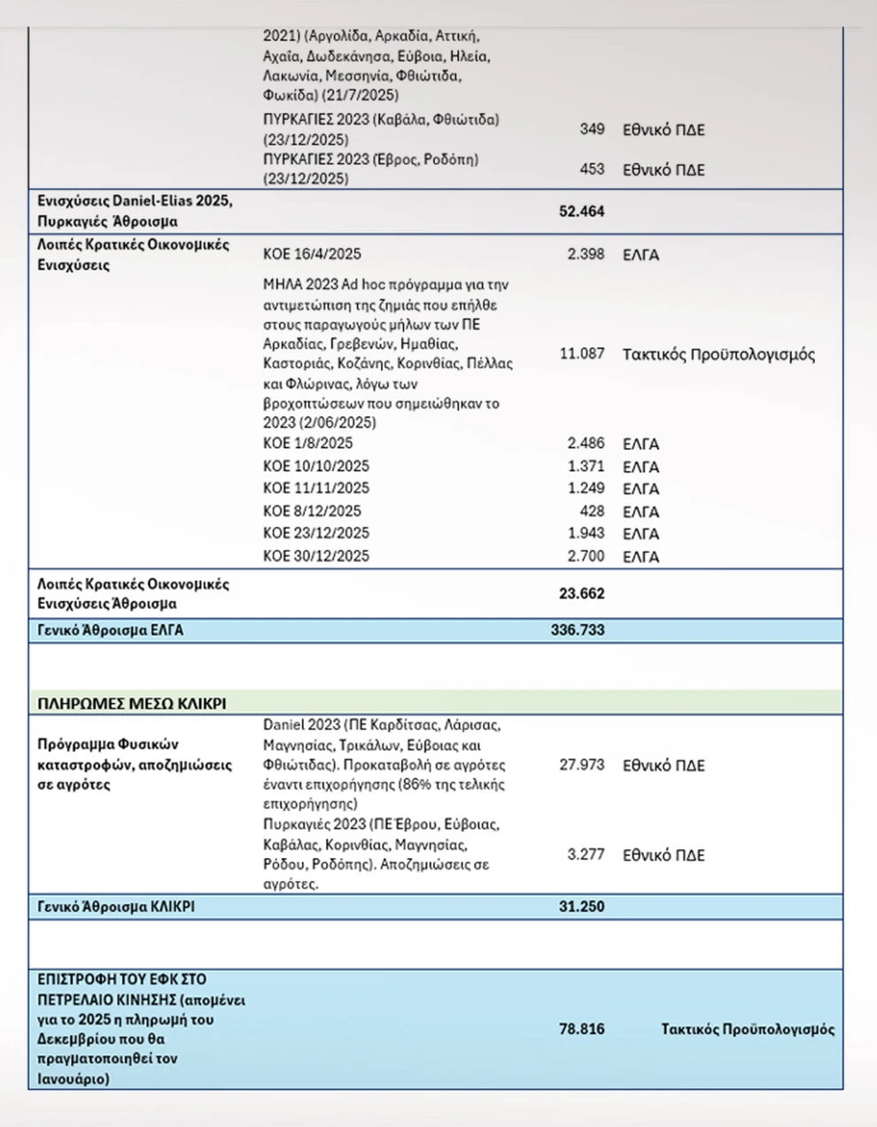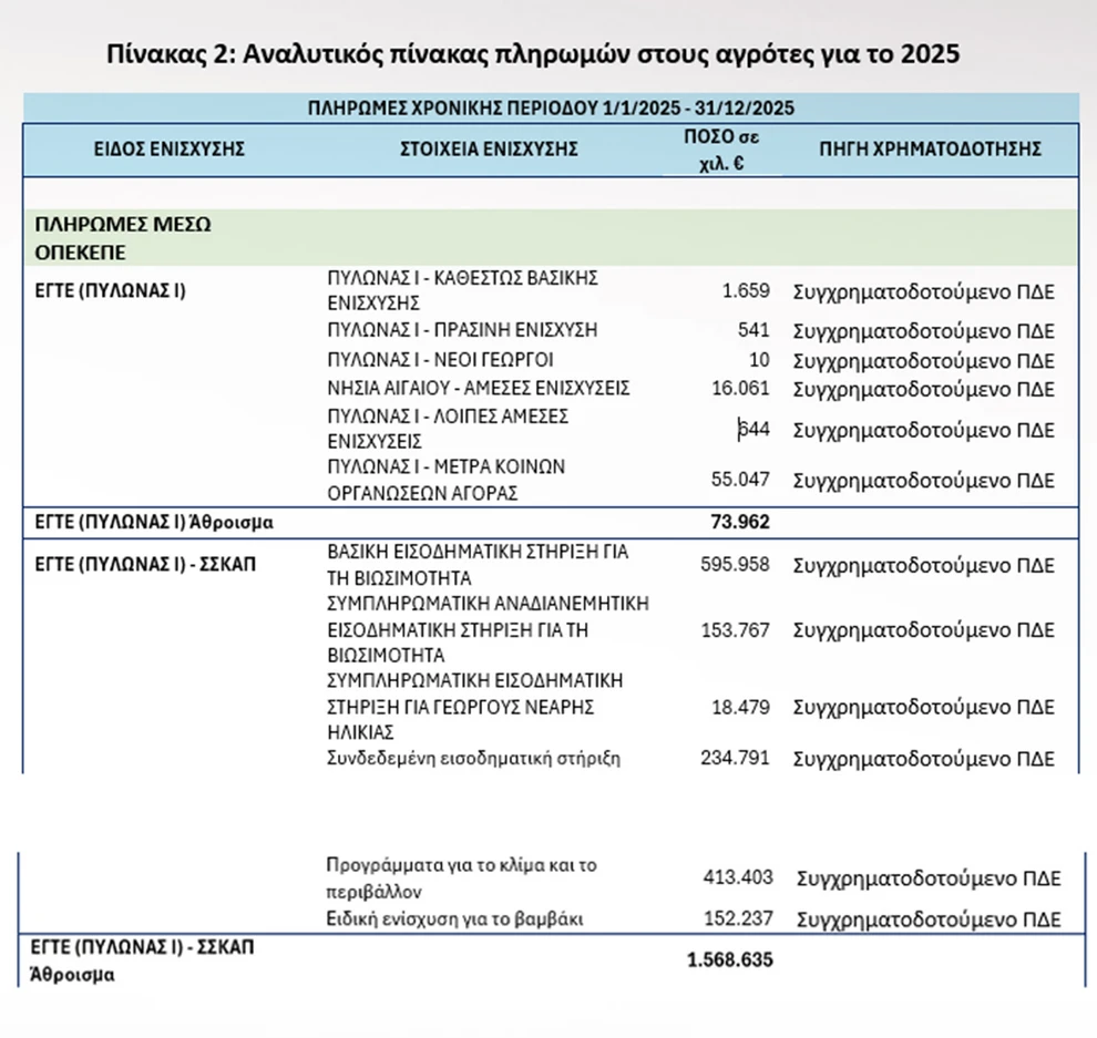 «3,82 δισ. ευρώ καταβλήθηκαν στους αγρότες μας το 2025 από τον ΟΠΕΚΕΠΕ, το Υπουργείο Οικονομικών και τον ΕΛΓΑ. Το ποσό αυτό είναι το μεγαλύτερο των τελευταίων ετών και κατά 13% πιο μεγάλο από τα 3,38 δισ. ευρώ που καταβλήθηκαν το 2024.