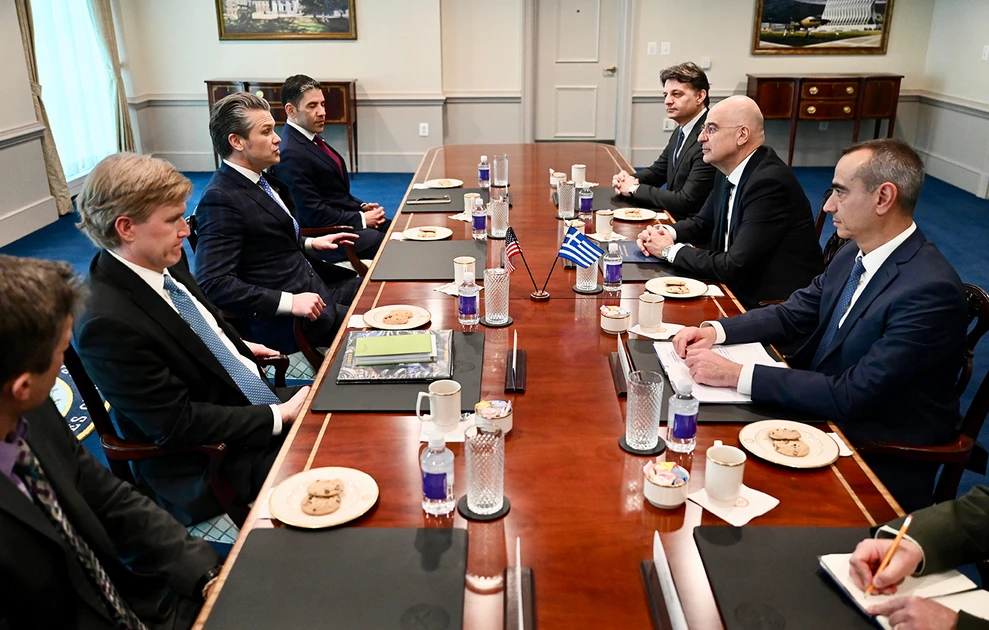 Η επίσκεψη του Νίκου Δένδια στην Ουάσινγκτον ολοκληρώθηκε με συνάντηση που είχε στο αμερικανικό Πεντάγωνο με τον υπουργό Πολέμου των ΗΠΑ, Πιτ Χέγκσεθ και τον υφυπουργό για θέματα Αμυντικής Πολιτικής, Έλμπριτζ Κόλμπι.