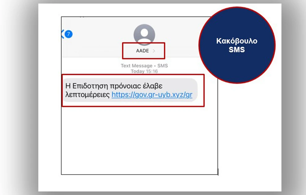 Με αφορμή παραπλανητικά μηνύματα (SMS), σχετικά με δήθεν χορήγηση επιδότησης πρόνοιας, που έχουν λάβει στα κινητά τηλέφωνά τους πολίτες, με φερόμενο αποστολέα την ΑΑΔΕ (AADE), η Ανεξάρτητη Αρχή Δημοσίων Εσόδων εφιστά την προσοχή στα εξής:
