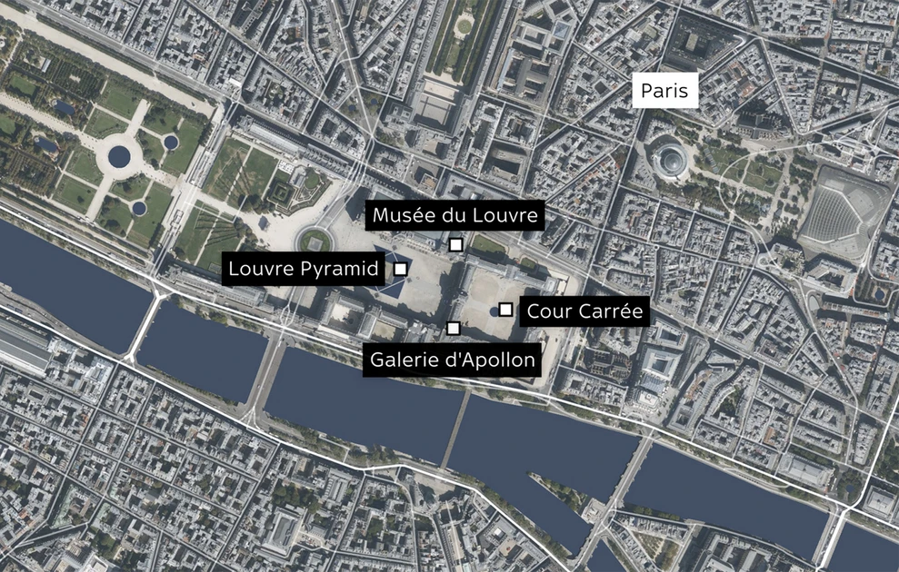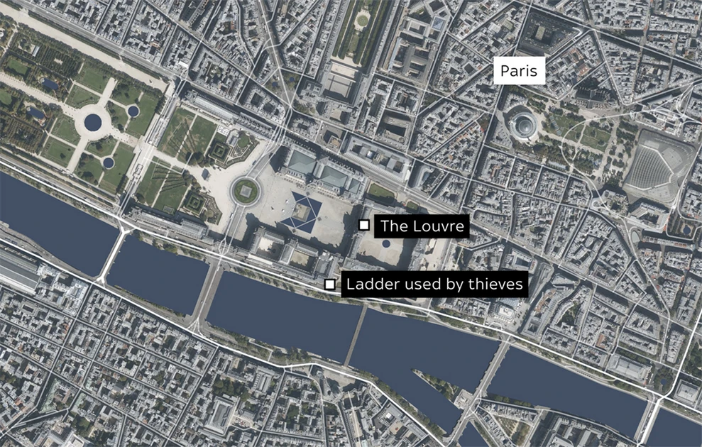 Η ληστεία συνέβη την Κυριακή 19/10 μεταξύ 09:30 και 09:40 τοπική ώρα, λίγο μετά το άνοιγμα του μουσείου για τους επισκέπτες. Τέσσερις δράστες χρησιμοποίησαν έναν μηχανικό ανελκυστήρα τοποθετημένο σε όχημα για να αποκτήσουν πρόσβαση στην Galerie d’Apollon (Γκαλερί του Απόλλωνα) μέσω ενός μπαλκονιού κοντά στον ποταμό Σηκουάνα.