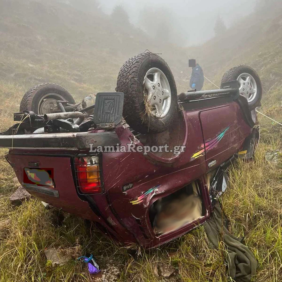 Αυτοκίνητο τύπου τζιπ με δύο επιβάτες που πήγαιναν για κυνήγι, εξετράπη της πορείας του και έφυγε σε γκρεμό με αποτέλεσμα να εγκλωβιστούν στα συντρίμμια.