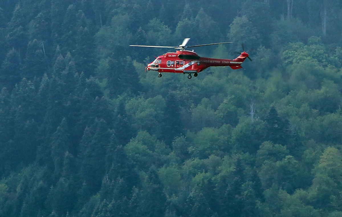 Η έντονη βροχόπτωση δυσχεραίνει το έργο των διασωστικών ομάδων που επιχειρούν στην ορεινή και γεμάτη πυκνό δάσος περιοχή.