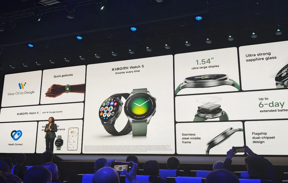 Το Xiaomi Watch 5 έρχεται με Wear OS by Google (Wear OS 6), Google Wallet με NFC και ενσωμάτωση Google Gemini, με χειρονομίες που υποστηρίζονται από αισθητήρες EMG/IMU/PPG και λειτουργίες Xiaomi HyperConnect για έλεγχο μεταξύ συσκευών.