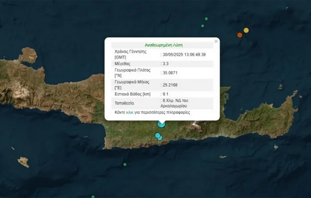 Σεισμός μεγέθους Μ4,3 και 3-4 μικρότεροι στην περιοχή του Αρκαλοχωρίου που επλήγη από Μ6,0 στις 27.9.2021. Μάλλον…