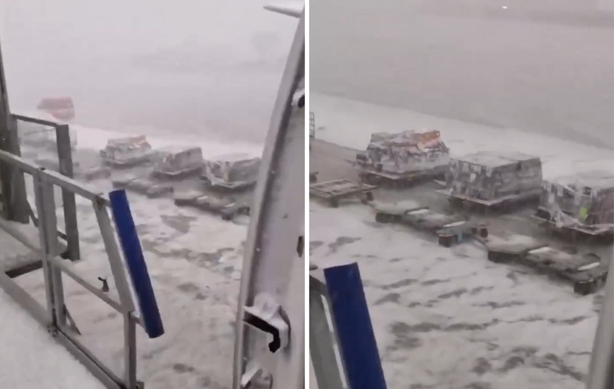 Today, a violent hailstorm covered the Fiumicino Airport runways in a thick blanket of white hail. 📍 Rome, Italy. pic.twitter.com/FQHbbrrdxk