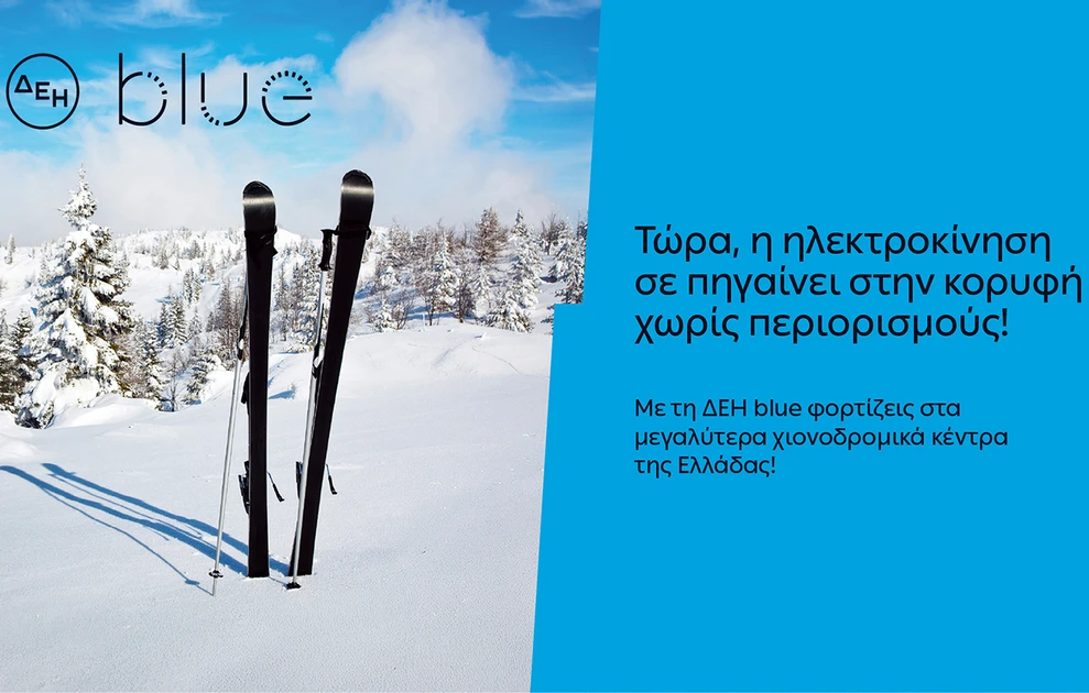 Συνολικά 54 σημεία φόρτισης λειτουργούν στα επτά μεγαλύτερα χιονοδρομικά κέντρα της χώρας, στο πλαίσιο ανάπτυξης του δημόσια προσβάσιμου δικτύου φόρτισης της ΔΕΗ blue, καθώς και της ενίσχυσης των υποδομών ηλεκτροκίνησης σε ορεινούς και χειμερινούς δημοφιλείς προορισμούς. Η επέκταση του δικτύου αφορά τα χιονοδρομικά κέντρα Παρνασσού, Βόρα, Βασιλίτσας, Ζήρειας, Καλαβρύτων, 3-5 Πηγαδιών και Σελίου.