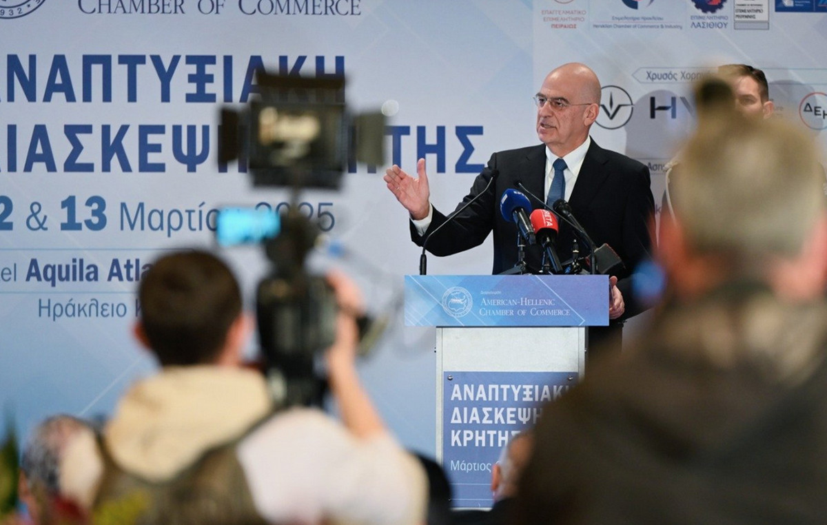 «Η Κρήτη είναι ακριβώς πάνω στο σημείο τομής του άξονα βορρά – νότου και ανατολής – δύσης, του γεωπολιτικού άξονα, του γεωγραφικού άξονα και του ενεργειακού άξονα» επισήμανε ο κ. Δένδιας.