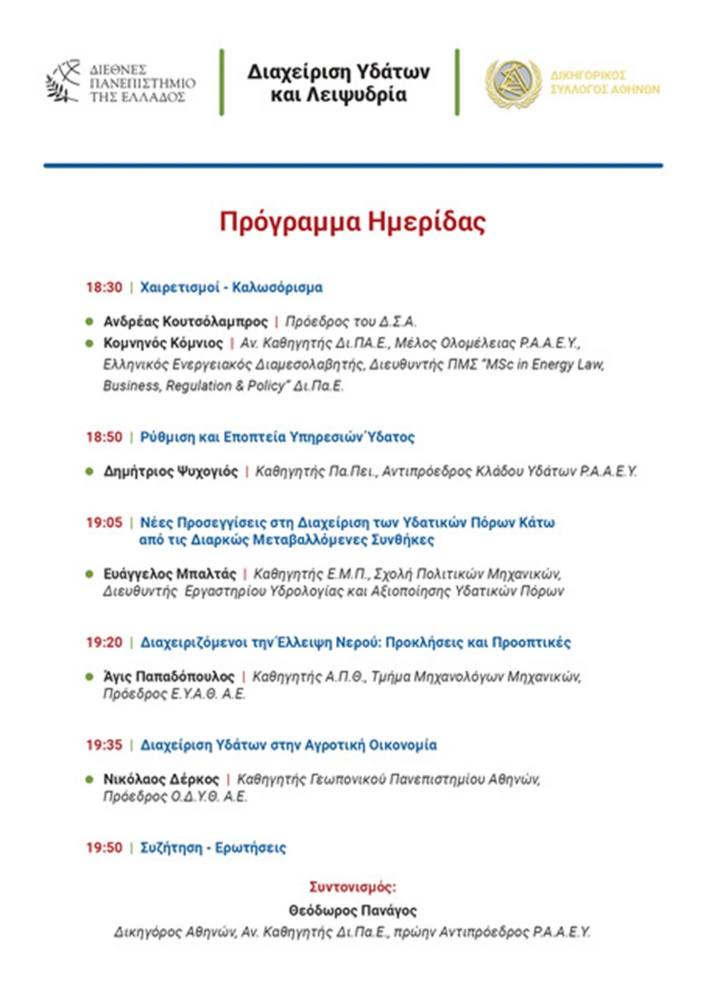 19:05 | Νέες Προσεγγίσεις στη Διαχείριση των Υδατικών Πόρων κάτω από τις Διαρκώς Μεταβαλλόμενες Συνθήκες