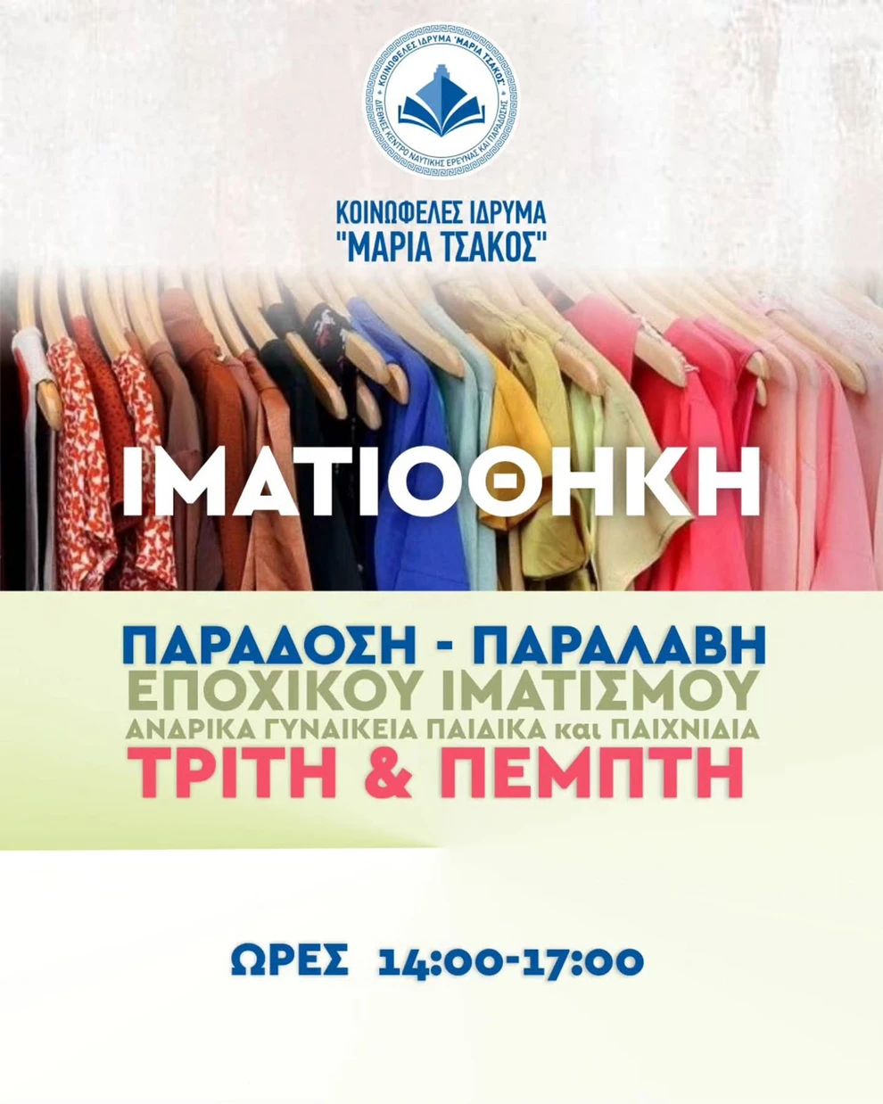 Ταυτόχρονα έχει απευθύνει κάλεσμα σε όσους μπορούν και θέλουν να προσφέρουν ρούχα και παιχνίδια να επικοινωνήσουν με τα γραφεία του Ιδρύματος κάθε Τρίτη και Πέμπτη από τις δυο το μεσημέρι μέχρι και τις πέντε το απόγευμα.