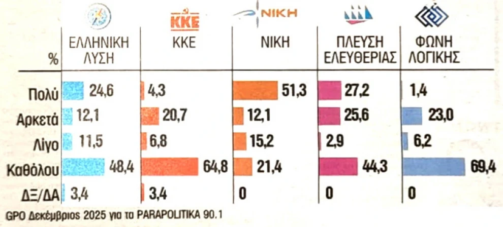 Η εφημερίδα τα ΝΕΑ παρουσιάζει μία ανάλυση από δημοσκόπηση της GPO για τα Παραπολιτικά FM τον Δεκέμβριο που αποτυπώνει τις δεξαμενές από τις οποίες αντλεί ψηφοφόρους το κόμμα Καρυστιανού.