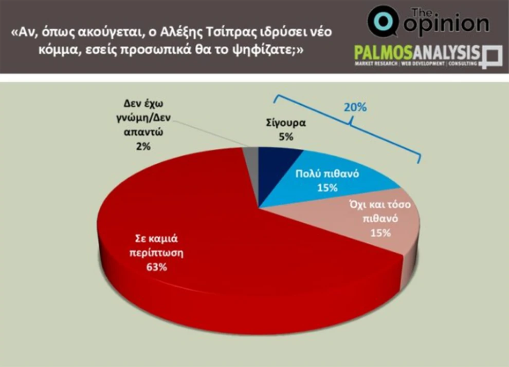 Δημοσκόπηση Palmos Analysis: Πρωτιά για τη ΝΔ, αρνητικοί οι πολίτες για ένα νέο κόμμα Τσίπρα