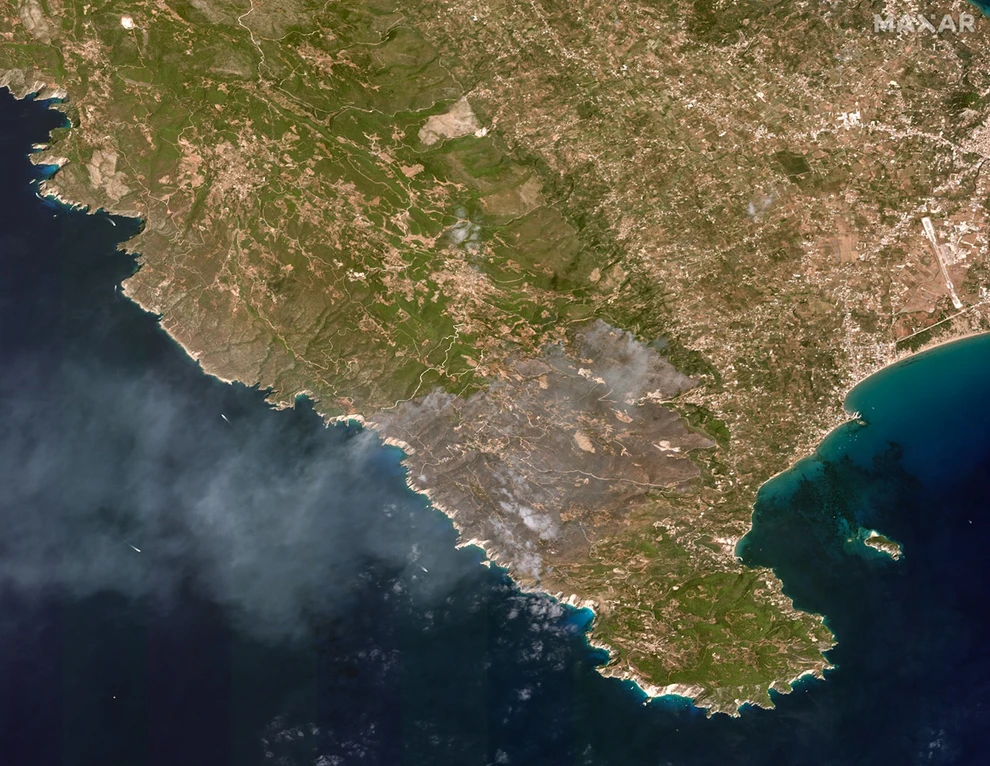 Οι τελευταίες λήψεις από τους δορυφόρους της Maxar καταγράφουν με απόλυτη σαφήνεια το εκτεταμένο πλήγμα που άφησαν πίσω τους οι πρόσφατες πυρκαγιές σε τρία σημεία της χώρας, δηλαδή σε Χίο, Ζάκυνθο και Πρέβεζα.