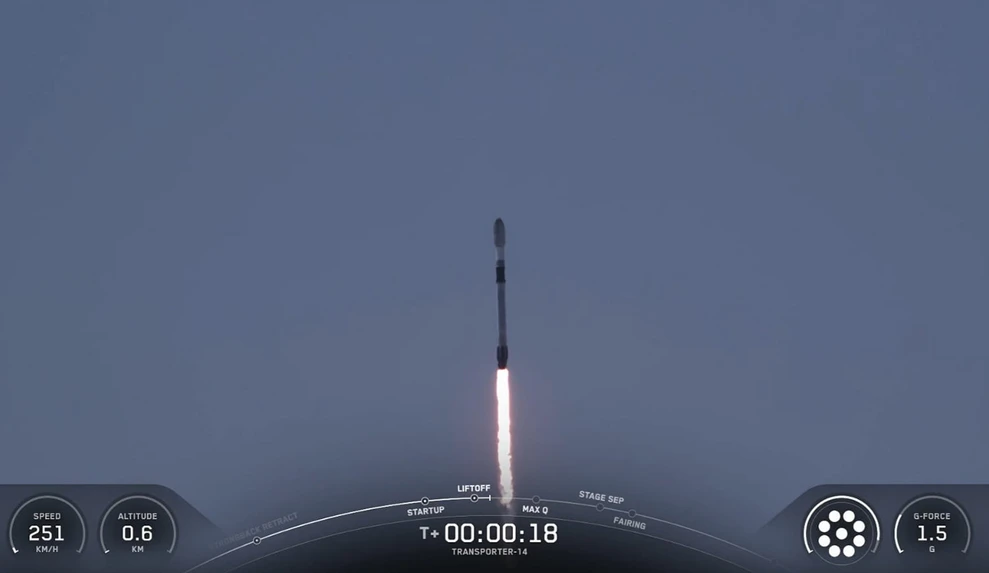 Η εκτόξευση έγινε από τη βάση Vandenberg των ΗΠΑ με πύραυλο Falcon-9 στο πλαίσιο της αποστολής Transporter-14 της SpaceX.