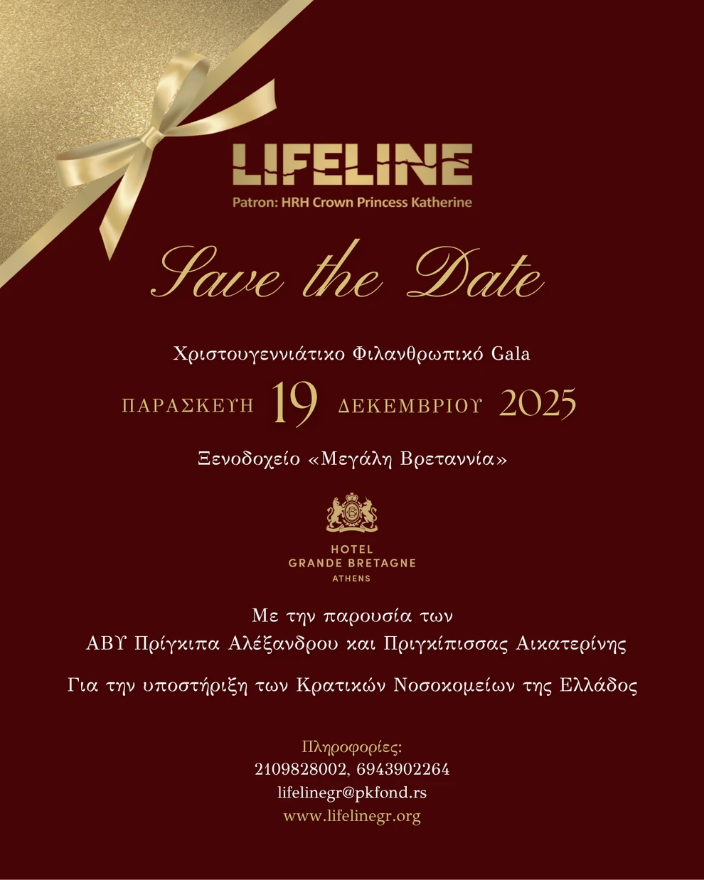 Το gala μετά του δείπνου θα πραγματοποιηθεί την Παρασκευή 19 Δεκεμβρίου 2025 στο ξενοδοχείο «Μεγάλη Βρεταννία», και υπό την αιγίδα και την παρουσία των Α.Β.Υ πρίγκιπα Αλέξανδρου και πριγκίπισσας Αικατερίνης.