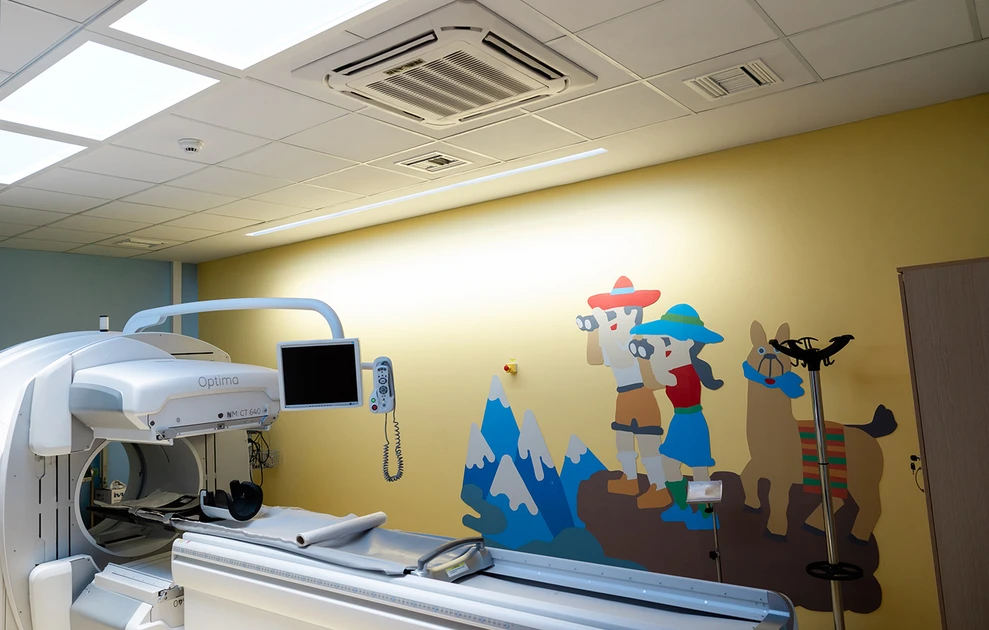 Με την εγκατάσταση του συγκεκριμένου συστήματος, δημιουργείται η αίσθηση φυσικού φωτισμού στους υπόγειους χώρους του εν λόγω τμήματος. Πρόκειται για ένα πρωτοποριακό σύστημα που εγκαθίσταται για πρώτη φορά στην χώρα μας, ενώ το συγκεκριμένο σύστημα εφαρμόζεται σε μεγάλα Νοσοκομεία του εξωτερικού στοχεύοντας στην βελτίωση της εύθραυστης ψυχολογίας των μικρών ασθενών, οι οποίοι σε αυτή την τρυφερή ηλικία καλούνται να υποβληθούν σε υβριδικές απεικονιστικές εξετάσεις και θεραπείες με ιώδιο.
