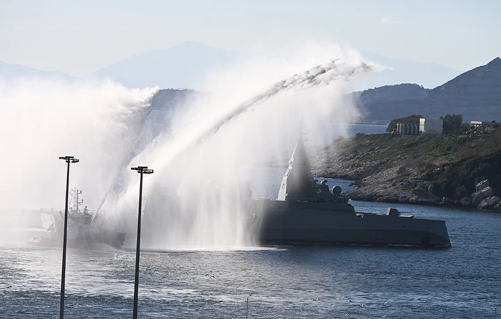 Δείτε την εν πλω υποδοχή της φρεγάτας «Κίμων» στον Σαρωνικό Κόλπο: