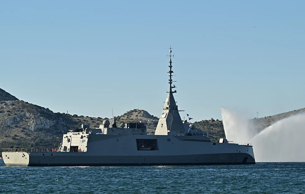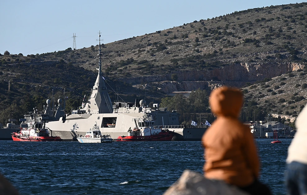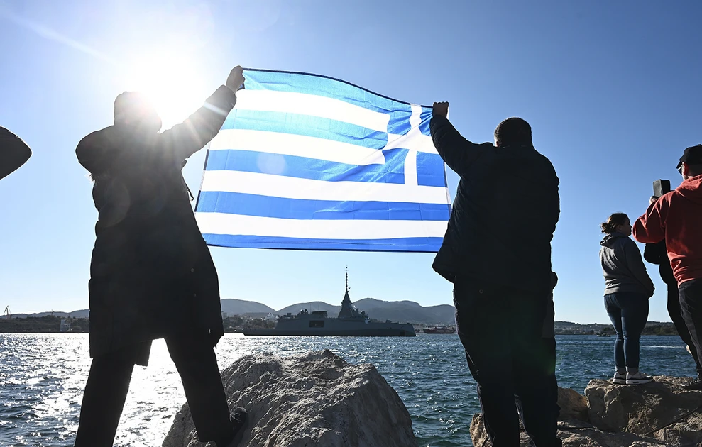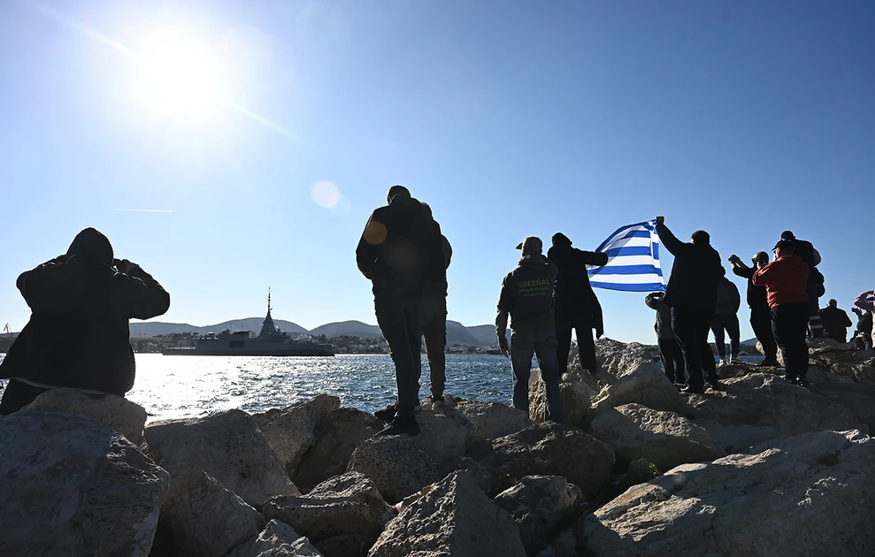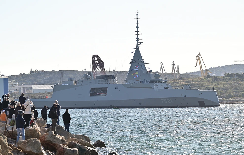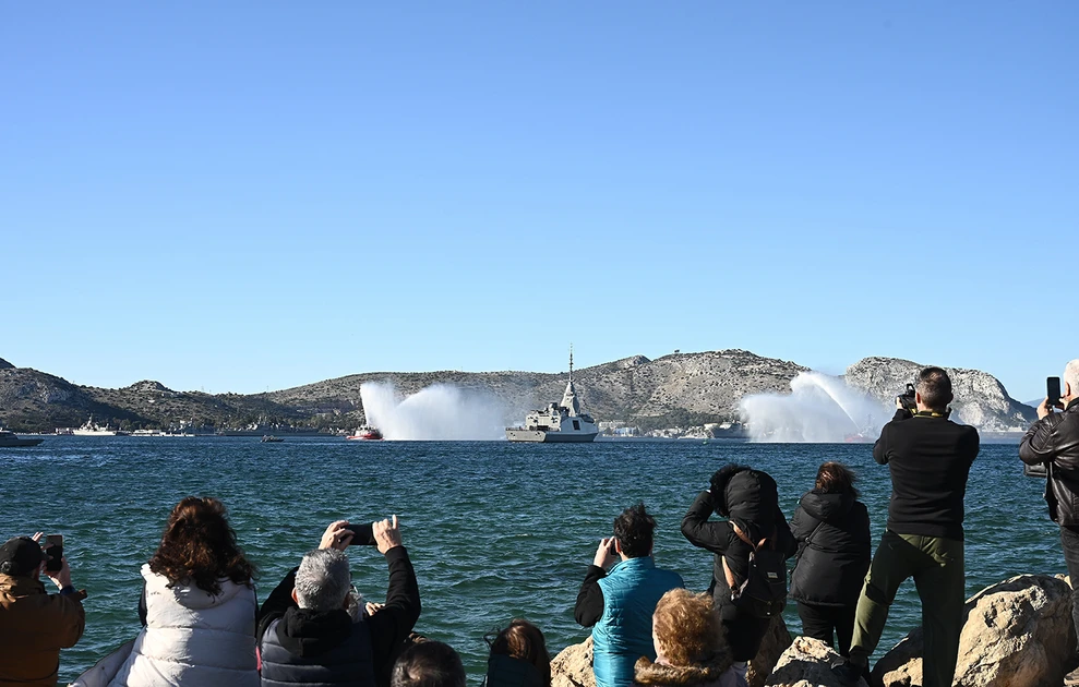 Η φρεγάτα κλάσης FDI HN «Belharra» πέρασε μπροστά από το λιμάνι της περιοχής -σε απόσταση «αναπνοής» από το πλήθος- λίγο πριν καταλήξει στον τελικό της προορισμό, το ναύσταθμο της Σαλαμίνας.