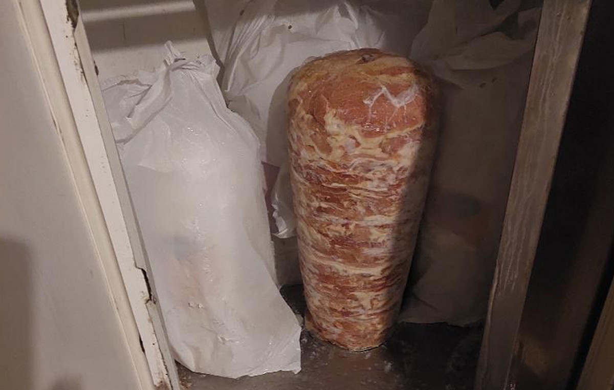 Σε φωτογραφίες που δόθηκαν στη δημοσιότητα, διακρίνονται κοκορέτσια, μπριζόλες, γύρος, ντονέρ και άλλα κρέατα, τα οποία ήταν αλλοιωμένα.