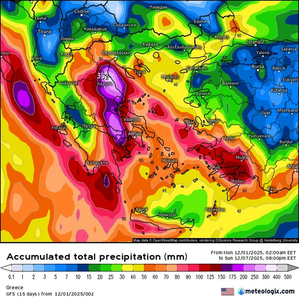 Την Πέμπτη, πρώτα η δυτική Ελλάδα θα μπει στο βαθύ κόκκινο με πολλές βροχές και ισχυρές καταιγίδες. Σιγά σιγά περιοχές όπως η Θεσσαλία θέλουν πολύ μεγάλη προσοχή, γιατί καθώς θα μετατοπιστεί το σύστημα πιο ανατολικά θα δημιουργηθούν συγκλίσεις κυρίως στον ανατολικό ηπειρωτικό κορμό και προς το δυτικό και βόρειο Αιγαίο, οι οποίες θα αφήσουν στο πέρασμά τους μεγάλο όγκο βροχής.