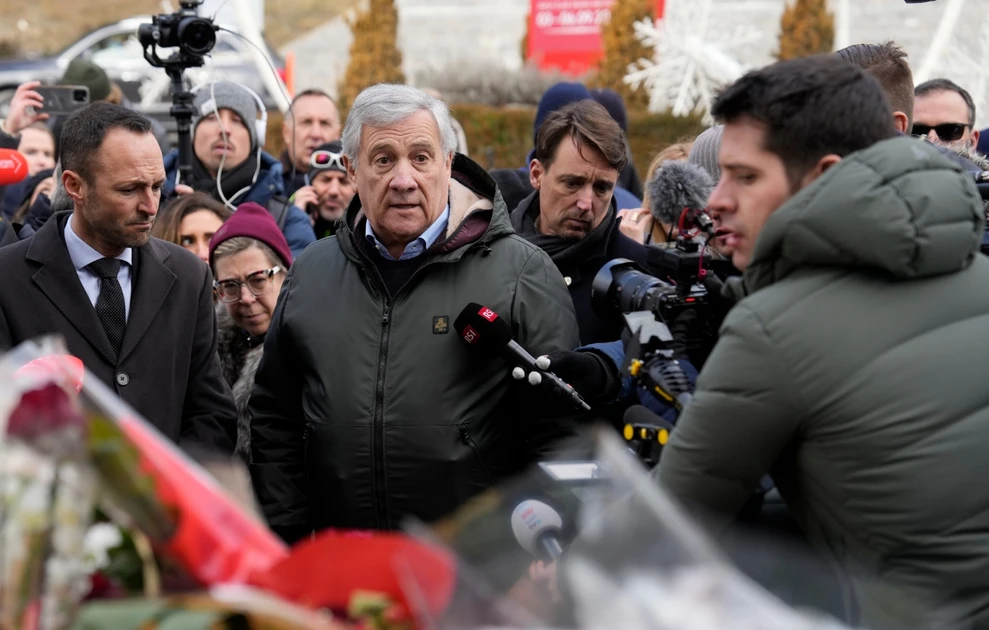 Ο Ιταλός υπουργός Εξωτερικών Αντόνιο Ταγιάνι έφτασε το μεσημέρι στο σημείο της τραγωδίας στο κλαμπ Le Constellation στο Κραν Μοντανά της Ελβετίας, όπου κατέθεσε λουλούδια.