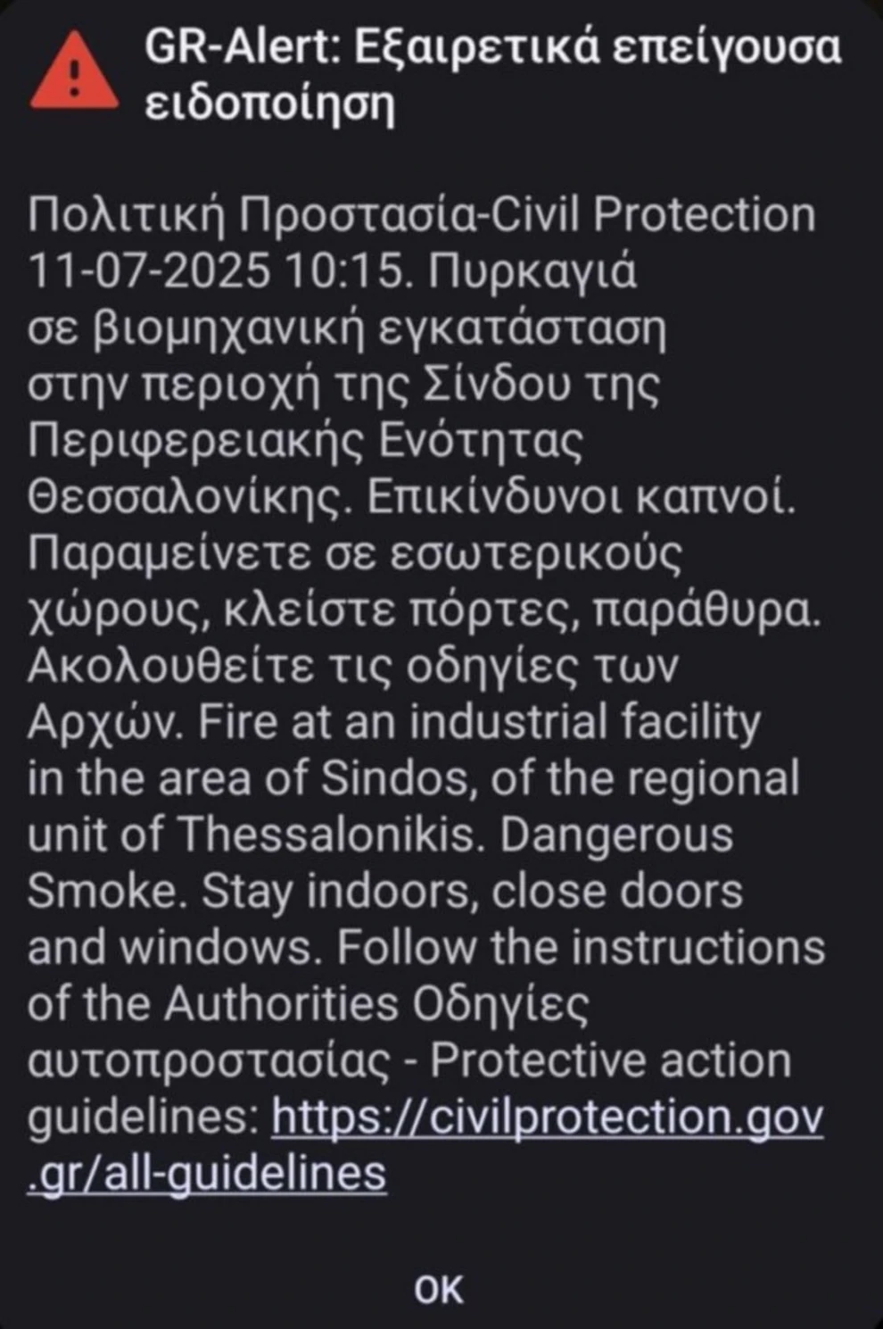 Πριν από λίγη ώρα ήχησε το 112 σε κατοίκους της περιοχής.