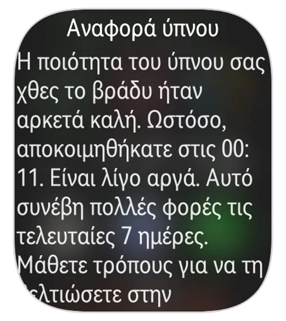 Και ξαφνικά, κάθε βράδυ που φοράς το smartwatch στο χέρι σου, ξετυλίγεται μια ιστορία. Μερικές φορές ήρεμη, άλλες ανήσυχη. Αλλά πάντα αληθινή.