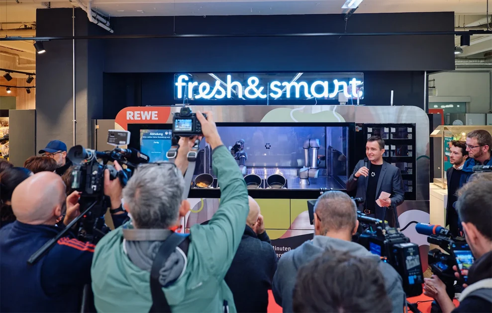 Οι πελάτες ενός σούπερ μάρκετ στο Ντίσελντορφ της Γερμανίας βιώνουν κάτι πραγματικά πρωτοποριακό: μια πλήρως αυτόνομη κουζίνα που μαγειρεύει, σερβίρει και καθαρίζει -χωρίς καμία ανθρώπινη παρέμβαση.