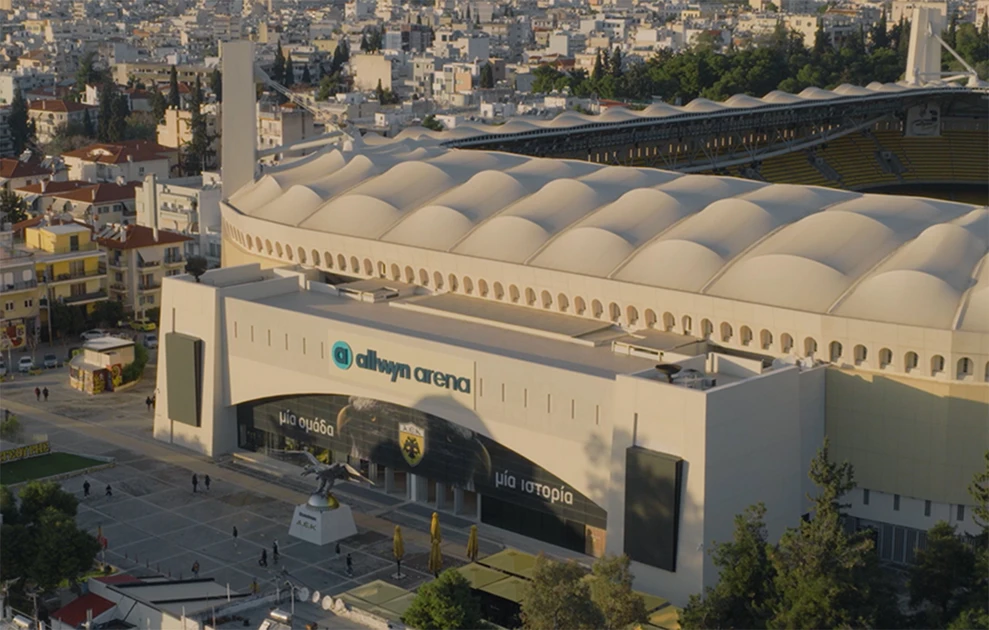 Στη νέα εποχή της Allwyn μπήκε και το γήπεδο της ΑΕΚ, που ονομάζεται πλέον Allwyn Arena.