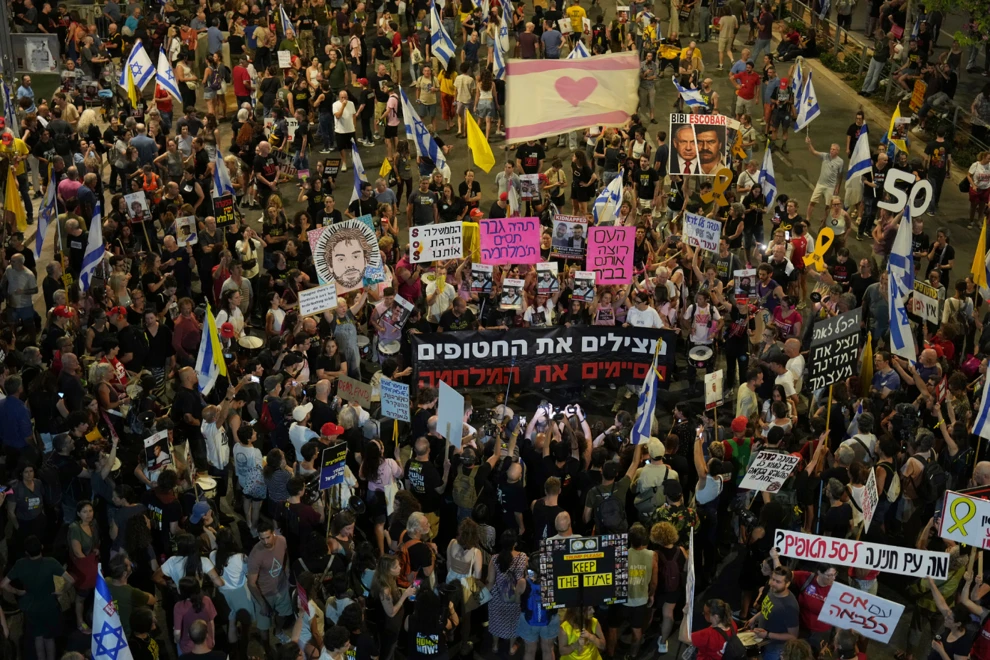 Στο Τελ Αβίβ, οι οικογένειες και οι φίλοι των ομήρων που κρατούνται στη Γάζα ήταν μεταξύ των διαδηλωτών που συγκεντρώθηκαν έξω από το κτίριο της αμερικανικής πρεσβείας την Ημέρα Ανεξαρτησίας των ΗΠΑ, καλώντας τον Τραμπ να εξασφαλίσει μια συμφωνία για όλους τους αιχμαλώτους.