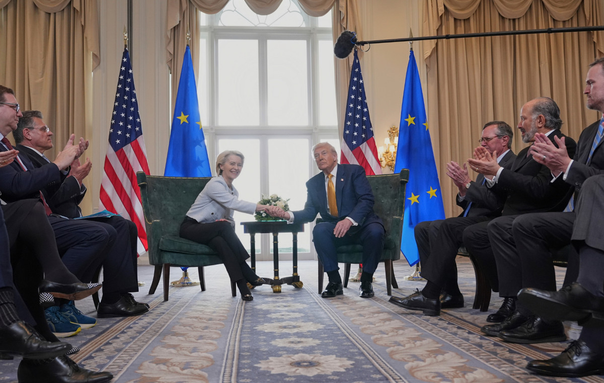 Η συνάντηση Τραμπ – Φον Ντερ Λάιεν στο γήπεδο γκολφ «Τραμπ Τέρνμπερι» στη Σκωτία έφερε αποτέλεσμα, με την ΕΕ να προσφέρει περισσότερα από 1 τρισεκατομμύριο δολάρια στις ΗΠΑ, ώστε να αποφύγει τους υψηλούς δασμούς.