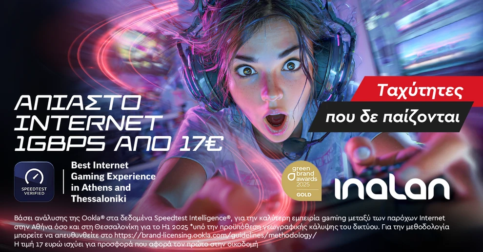 Σύμφωνα με τα Speedtest Connectivity Reports της Ookla® για το πρώτο εξάμηνο του 2025, η INALAN κατέγραψε κορυφαίες επιδόσεις και στο Gaming Experience Score σε Αθήνα και Θεσσαλονίκη, ξεπερνώντας όλους τους υπόλοιπους παρόχους που πληρούσαν τα κριτήρια συμμετοχής στην έρευνα για τις εν λόγω περιοχές.