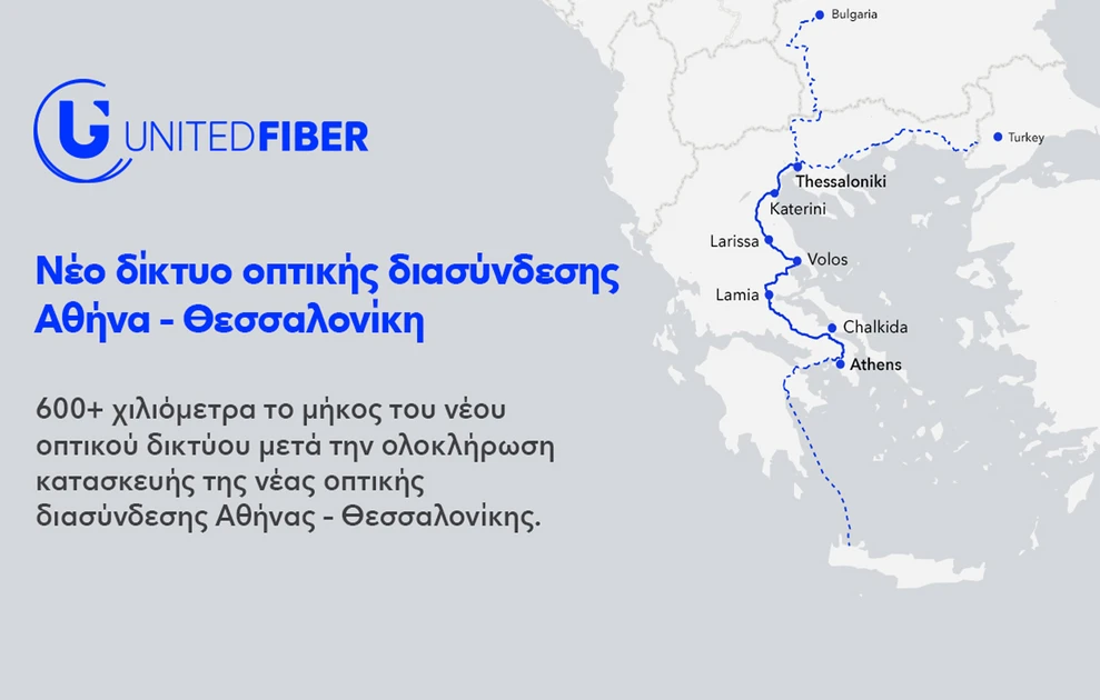 Οι επενδύσεις της United Fiber για την ανάπτυξη των κύριων υποδομών δικτύου συνεχίζονται με αμείωτους ρυθμούς με αποκορύφωμα για το 2025 την ολοκλήρωση της νέας οπτικής διασύνδεσης Αθήνας – Θεσσαλονίκης, κατασκευάζοντας νέο οπτικό δίκτυο μήκους άνω των 600 χιλιομέτρων, ενισχύοντας τις συνδέσεις με τη Νοτιοανατολική Ευρώπη και με κόμβους της Δυτικής Ευρώπης. Με την υποδομή αυτή, διασφαλίζεται η αξιοπιστία, η σταθερότητα και η ευελιξία των υφιστάμενων διασυνδέσεων με Τουρκία, Μέση Ανατολή και Βουλγαρία, παρέχοντας νέα εναλλακτική οπτική διαδρομή προσδίδοντας παράλληλα ακόμα μεγαλύτερη ασφάλεια στο κύριο οπτικό δίκτυο της εταιρίας.