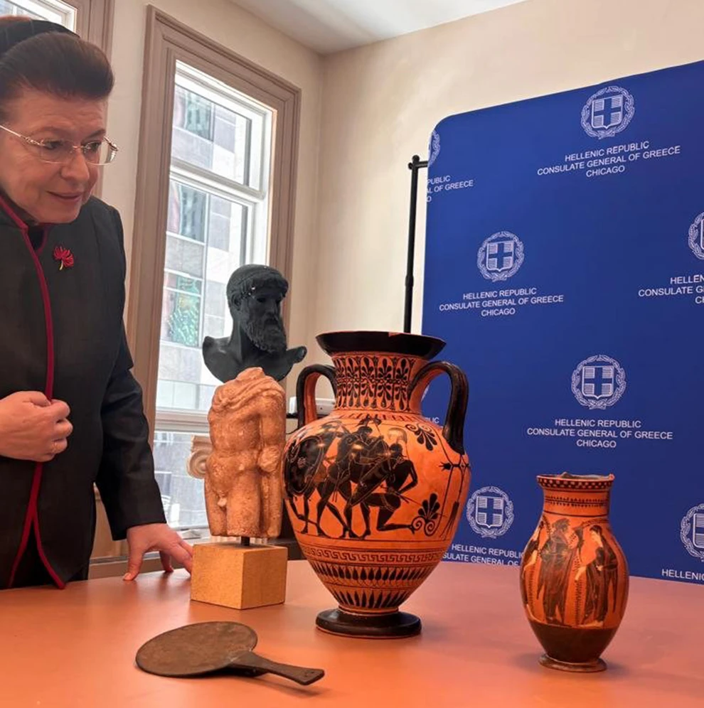 Στο Γενικό Προξενείο της Ελλάδας στο Σικάγο παρέλαβε μέσω ειδικής τελετής η υπουργός Πολιτισμού, Λίνα Μενδώνη, πέντε αρχαιότητες που επαναπατρίζονται από τις Ηνωμένες Πολιτείες.