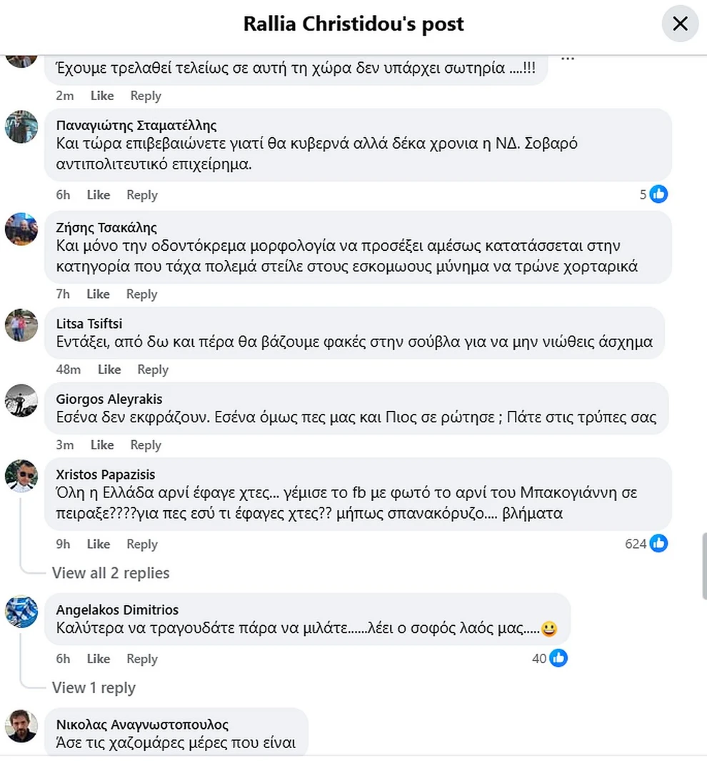 Μια ανάρτηση του Κώστα Μπακογιάννη στα social media, στην οποία εμφανίζεται να ποζάρει δίπλα σε ψημένο οβελία ανήμερα της Κυριακής του Πάσχα έφερε την αντίδραση της Ραλλίας Χρηστίδου η οποία του άσκησε δημόσια κριτική.