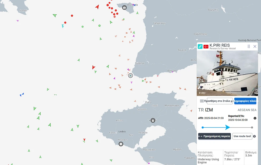 Το τουρκικό σκάφος κινείται προς το παρόν σε τουρκικά χωρικά ύδατα, ενώ στη συνέχεια αναμένεται να βρεθεί σε διεθνή.