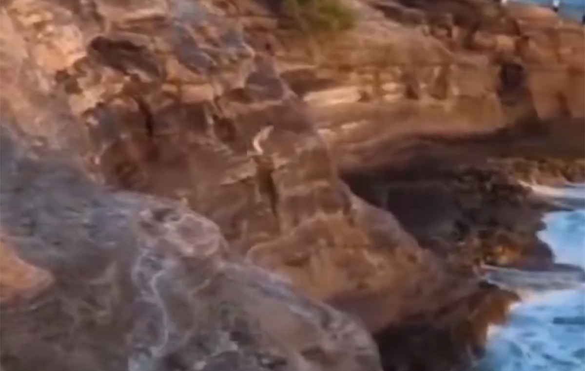 Ένα βίντεο, που τραβήχτηκε το απόγευμα του Σαββάτου, απεικονίζει τον Μπουρντιέ να τρέχει προς την άκρη του γκρεμού «Spitting Cave» στο αμερικανικό νησί Οάχου, κοντά στη Χονολουλού.