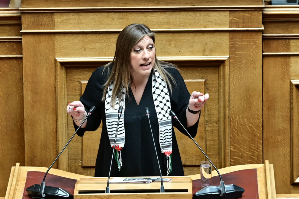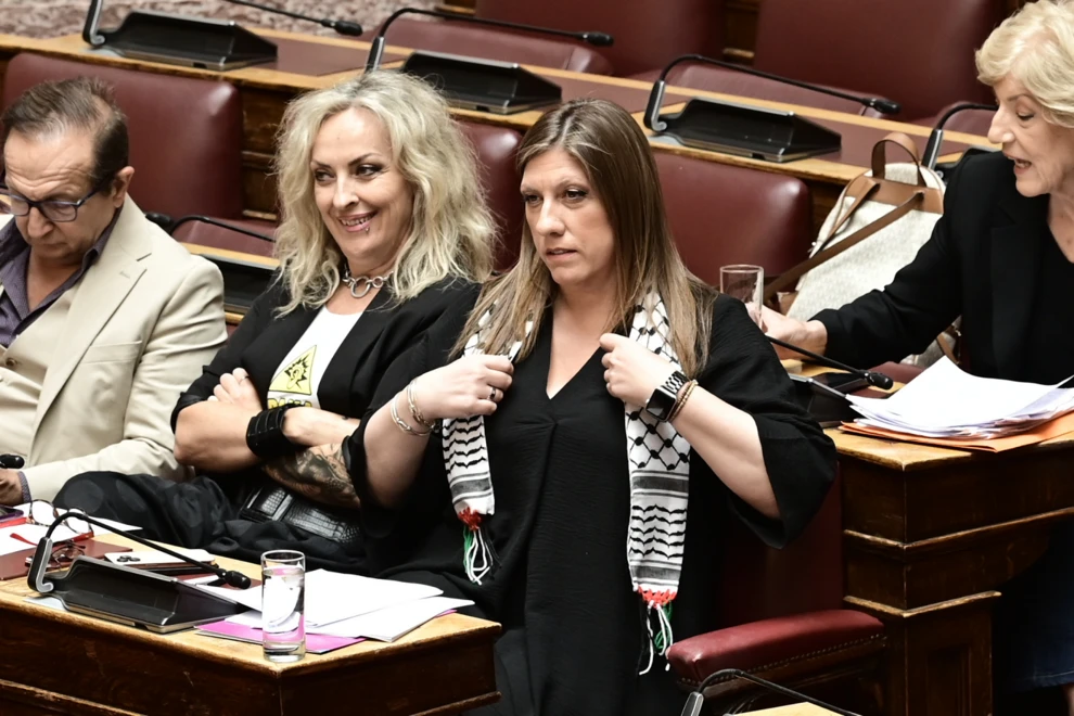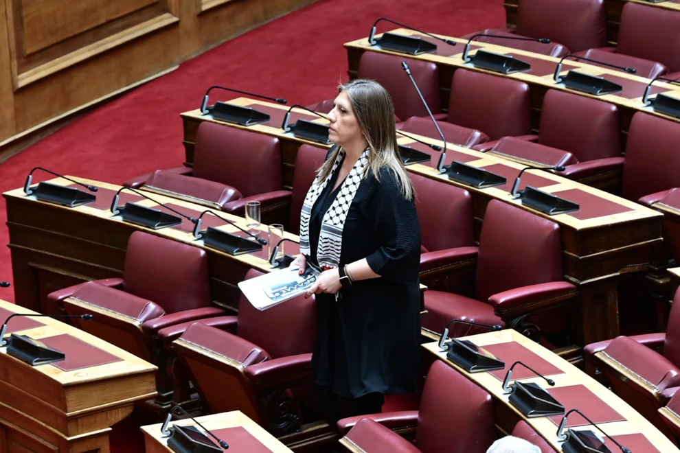 Με αφορμή τη νέα αιματοχυσία στη Γάζα από τους βομβαρδισμούς του Ισραήλ, η Ζωή Κωνσταντοπούλου εμφανίστηκε στη Βουλή φορώντας παλαιστινιακή «μαντίλα», ώστε να εκφράσει τη στήριξη της στους Παλαιστίνιους.