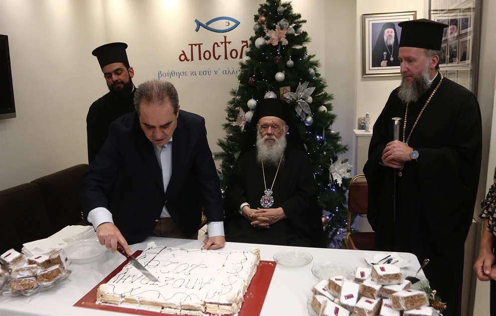Την πρωτοχρονιάτικη βασιλόπιτα του Φιλανθρωπικού Οργανισμού «Αποστολή», έκοψε σήμερα το μεσημέρι ο Αρχιεπίσκοπος Αθηνών και πάσης Ελλάδος κ.κ.Ιερώνυμος συνοδευόμενος από τον Γενικό Αρχιερατικό Επίτροπο της Ιεράς Αρχιεπισκοπής Αθηνών, Αιδεσιμολογιώτατο Πρωτοπρεσβύτερο π. Εμμανουήλ Παπαμικρούλη και τον Αρχιδιάκονο π. Δημήτριο Φωκιανό. Τον Μακαριώτατο υποδέχτηκε ο Γενικός Διευθυντής της «Αποστολής» κ. Κωνσταντίνος Δήμτσας με συνεργάτες και το προσωπικό, ενώ παρέστη και ο Αντιπρύτανης Διοικητικών Υποθέσεων, Φοιτητικής Μέριμνας και Δια Βίου Μάθησης του ΕΚΠΑ, Καθηγητής κ. Χρήστος Καραγιάννης.