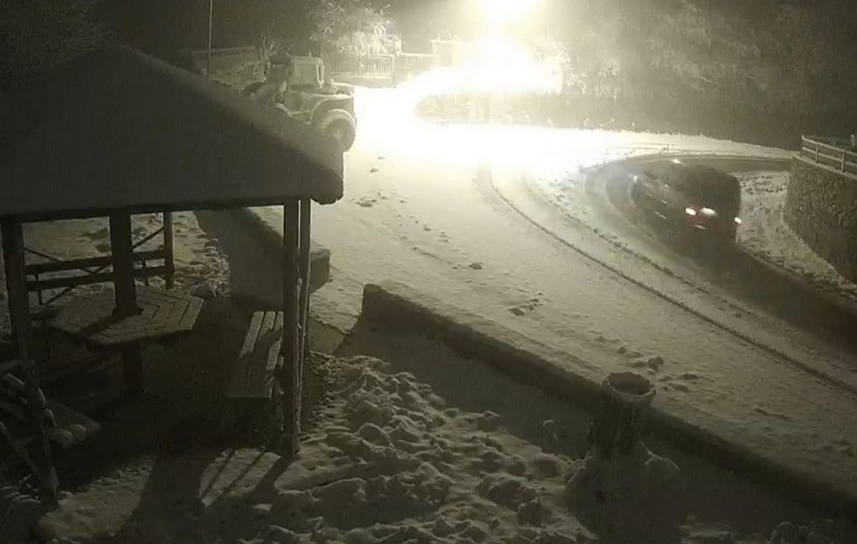 Η χιονόπτωση, που είναι κατά διαστήματα έντονη, έχει ως αποτέλεσμα τη συσσώρευση χιονιού στο οδόστρωμα, καθιστώντας την οδήγηση επικίνδυνη.