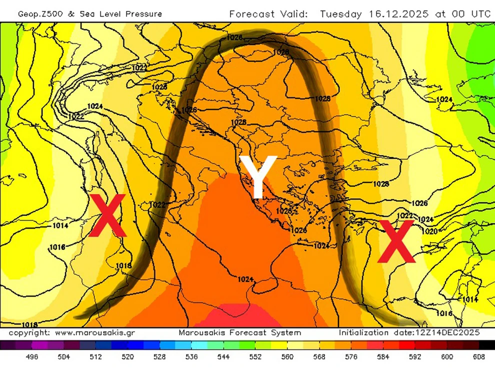 Καιρός του «Ωμέγα» Εμποδιστή αναμένεται τις ημέρες πριν από τα Χριστούγεννα στη χώρα μας, σύμφωνα με ανάρτηση του μετεωρολόγου Κλέαρχου Μαρουσάκη.