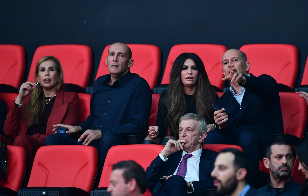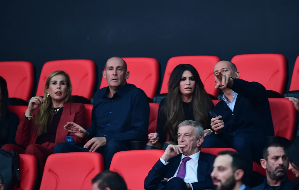 Η Κίμπερλι Γκίλφοϊλ συνοδευόταν από τους ιδιοκτήτες του Ολυμπιακού, Παναγιώτη και Γιώργο Αγγελόπουλο.