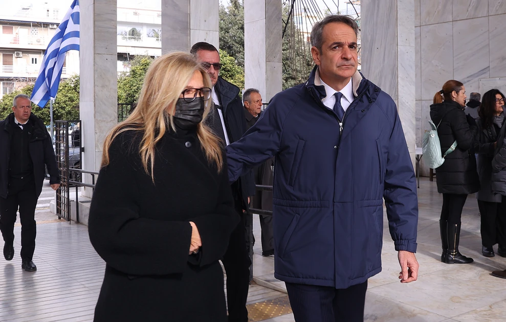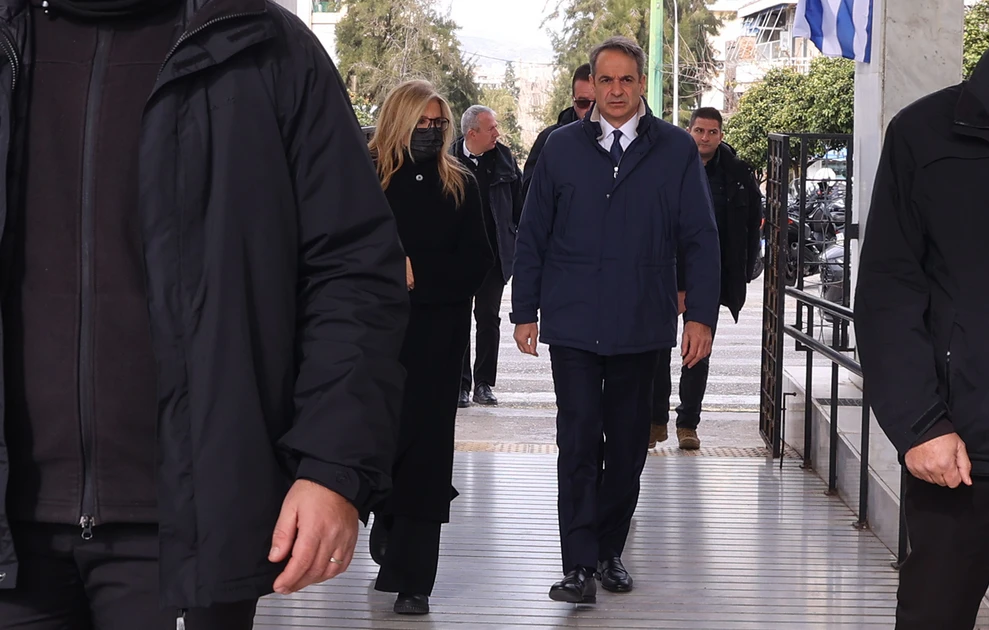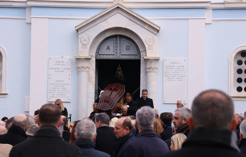 Στην εξόδιο ακολουθία που τελέστηκε στις 12:00 παραβρέθηκε και ο πρωθυπουργός Κυριάκος Μητσοτάκης μαζί με τη σύζυγό του Μαρέβα.