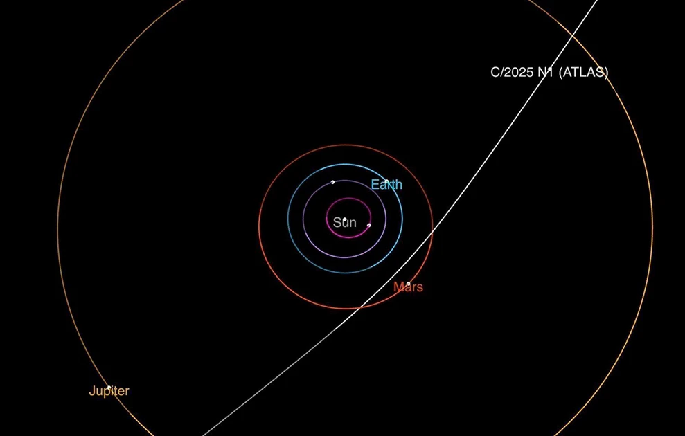 Ο κομήτης 3I/ATLAS διασχίζει το εσωτερικό ηλιακό σύστημα της Γης και καλύπτεται από σύννεφο διοξειδίου του άνθρακα, με αποτέλεσμα να φαίνεται κόκκινος και πως αποπνέει μια φαινομενικά απειλητική ατμόσφαιρα.