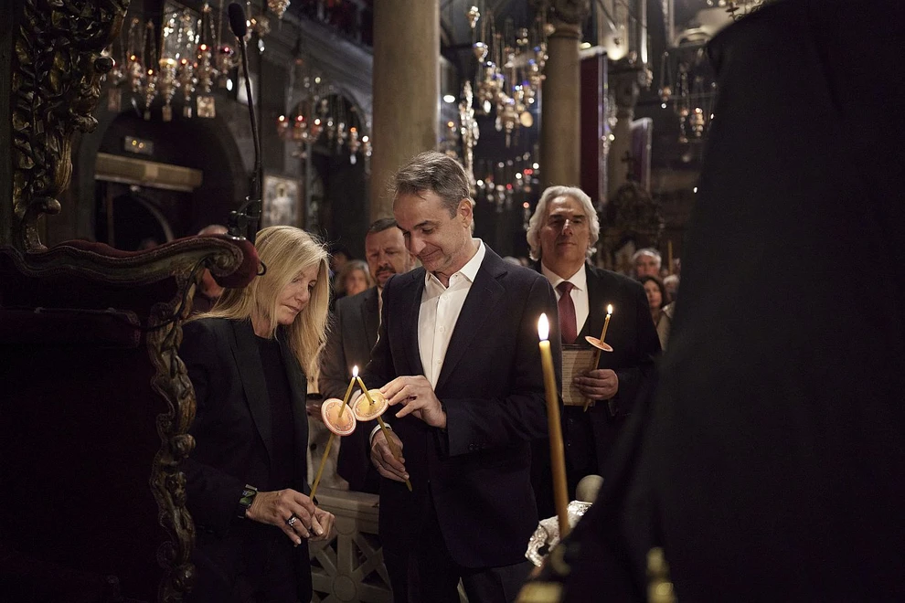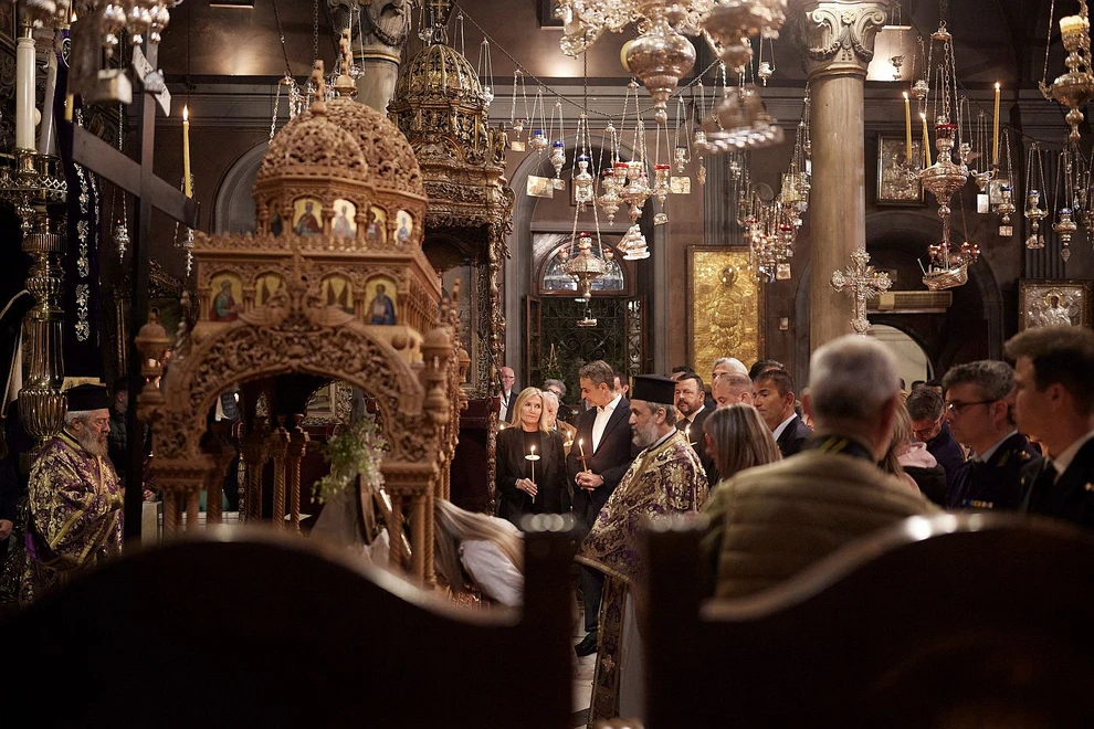 Ο Πρωθυπουργός Κυριάκος Μητσοτάκης, συνοδευόμενος από τη σύζυγό του Μαρέβα Γκραμπόφσκι – Μητσοτάκη, παρακολούθησε την Ακολουθία και Περιφορά του Επιταφίου στον Ιερό Ναό Ευαγγελιστρίας Τήνου.