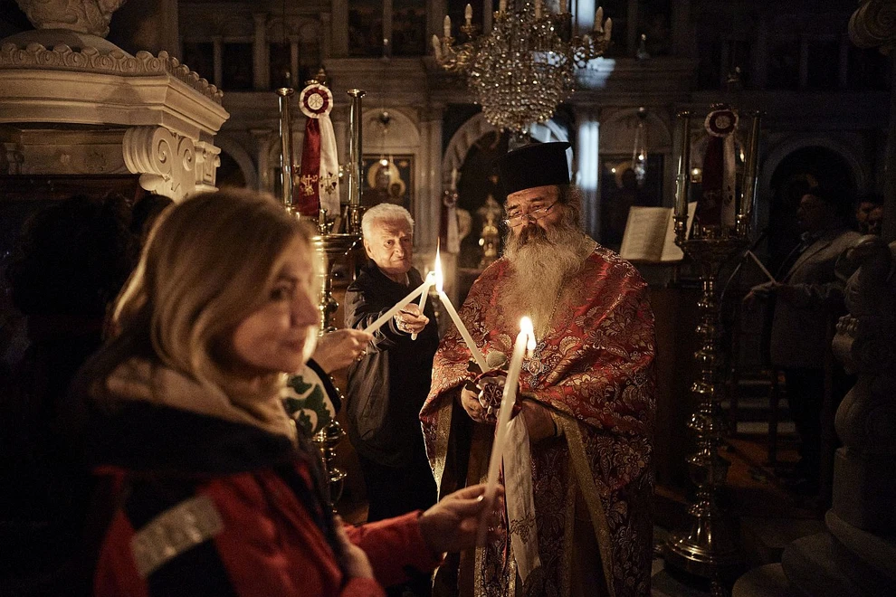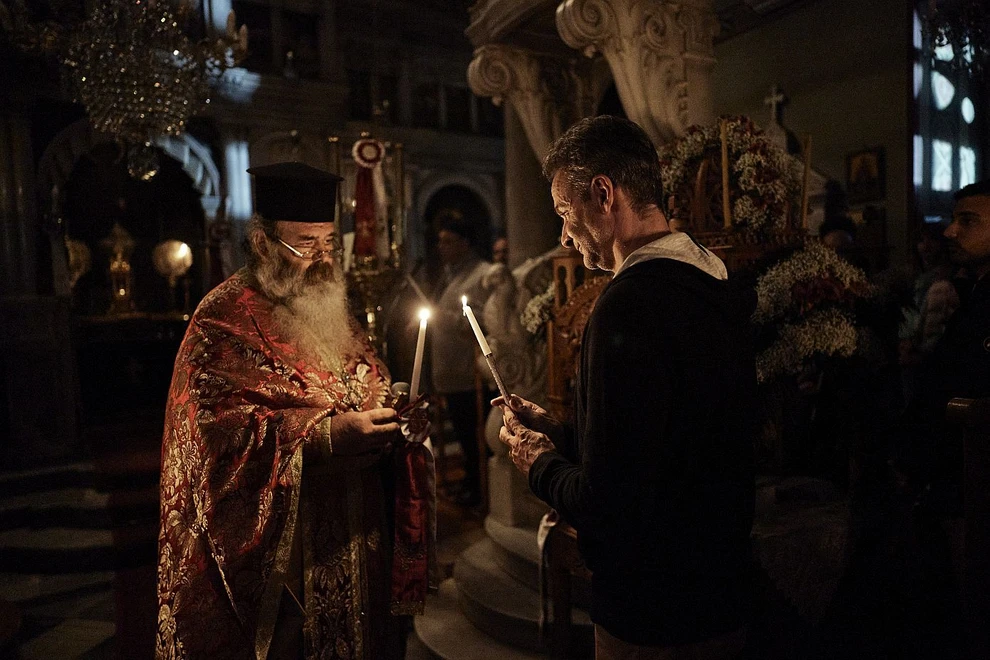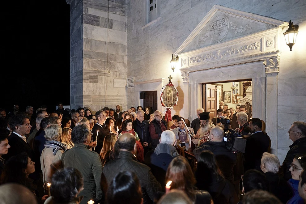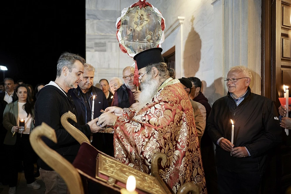 Ο Πρωθυπουργός Κυριάκος Μητσοτάκης, συνοδευόμενος από τη σύζυγό του Μαρέβα Γκραμπόφσκι – Μητσοτάκη, παρακολούθησε την Ακολουθία της Αναστάσεως στον Ιερό Ναό Αγίας Τριάδας Καρδιανής Τήνου.