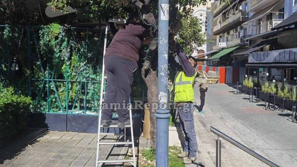Ένα ασυνήθιστο περιστατικό σημειώθηκε το μεσημέρι της Τρίτης (11 Νοεμβρίου) στην πλατεία Ελευθερίας της Λαμίας, την ώρα που συνεργείο του Δήμου εργαζόταν για τον στολισμό της πόλης ενόψει των Χριστουγέννων.