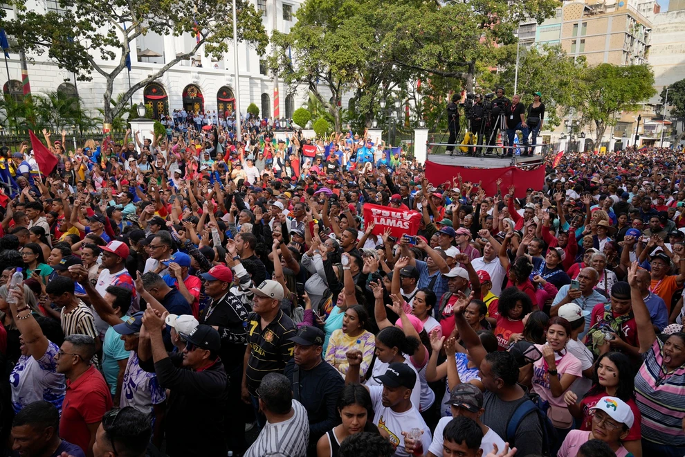 «Μαδούρο, φίλε, ο λαός είναι μαζί σου», «όχι, δεν θέλουμε να είμαστε βορειοαμερικανική αποικία», φώναζαν μεταξύ άλλων συγκεντρωμένοι.