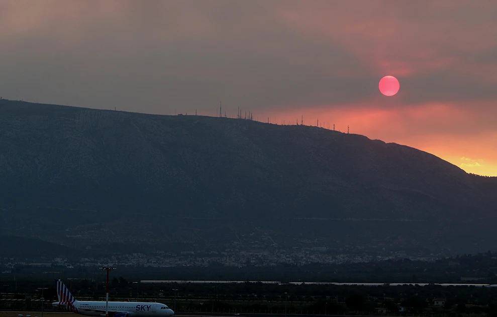 Αποπνικτική είναι ατμόσφαιρα στην Αττική τόσο από τη μεγάλη φωτιά που καίει στην Κερατέα, αλλά και από τα δύο μεγάλα μέτωπα που μαίνονται στην Τουρκία και συγκεκριμένα στα Δαρδανέλια.
