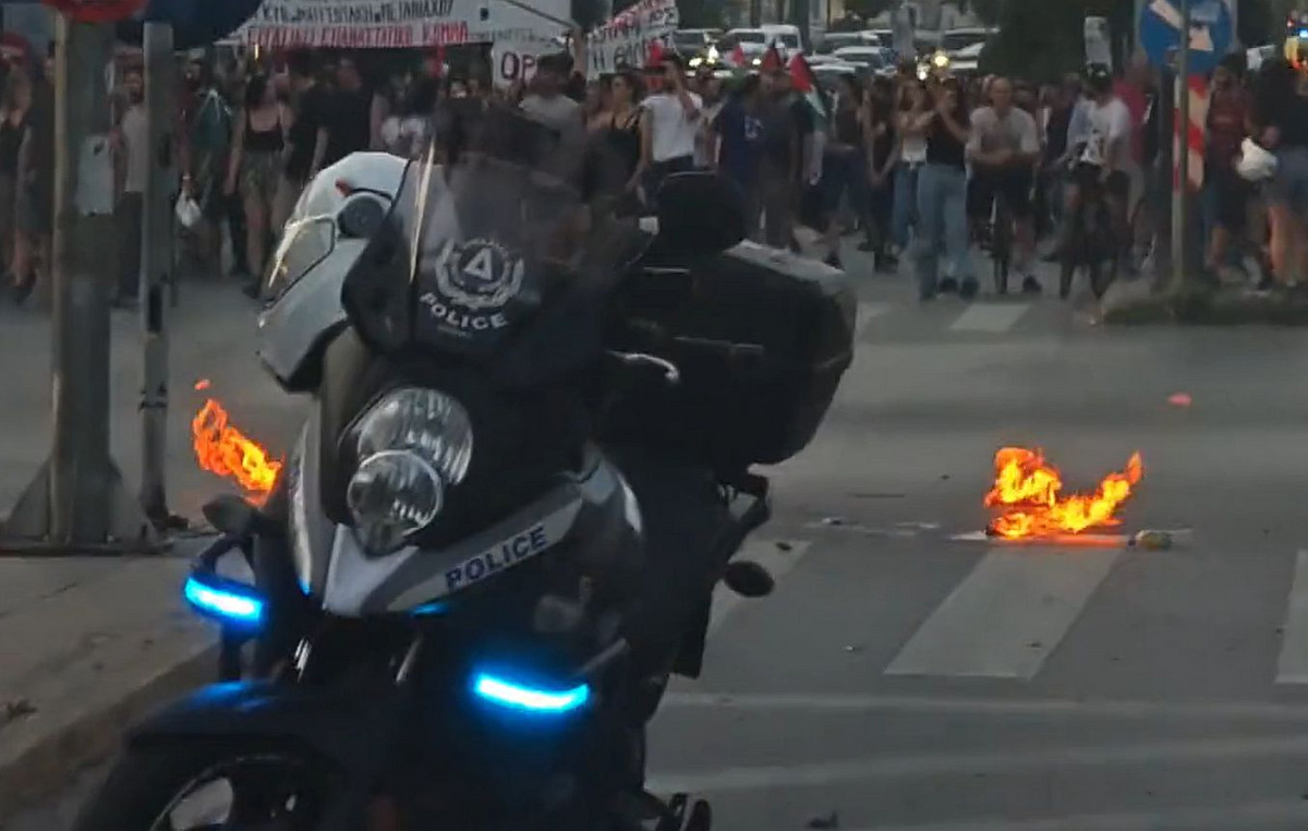 Με μεγάλη συμμετοχή, αλλά και μια μικρή ένταση με μολότοφ στο τέλος της, πραγματοποιήθηκε η πορεία υπέρ της Παλαιστίνης για τις τελευταίες εξελίξεις με το πλοίο Madleen που προσέγγιζε τη Γάζα.